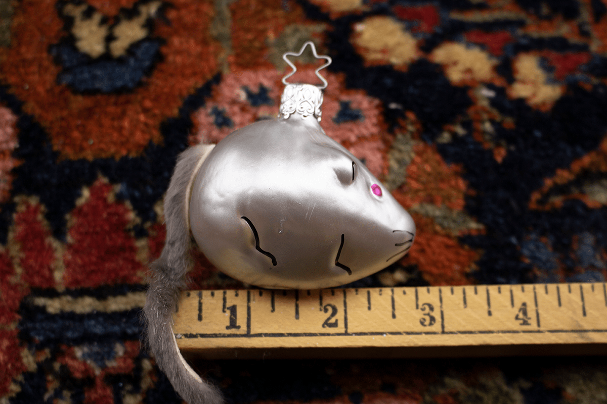 Be the first to review “Grey Mouse with Rabbit Fur Tail, Vintage Old World Glass Christmas Ornament”