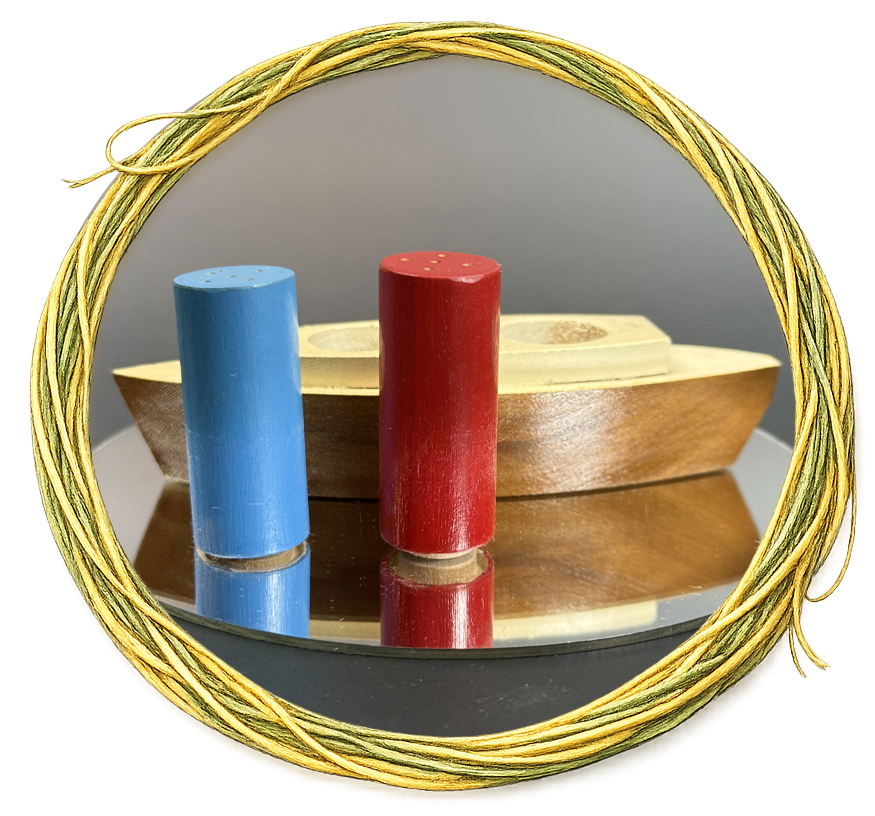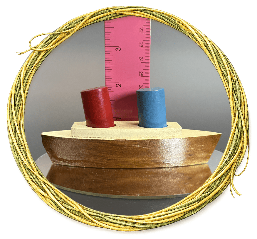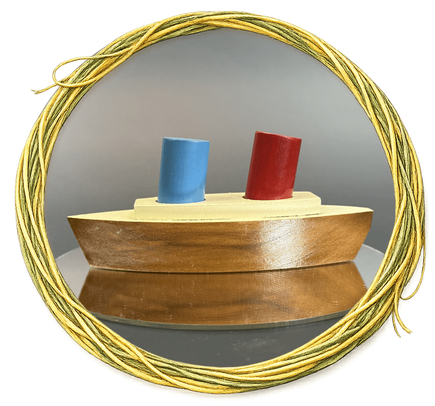 Wooden ship, with shaker smoke stacks, about 2 inches tall